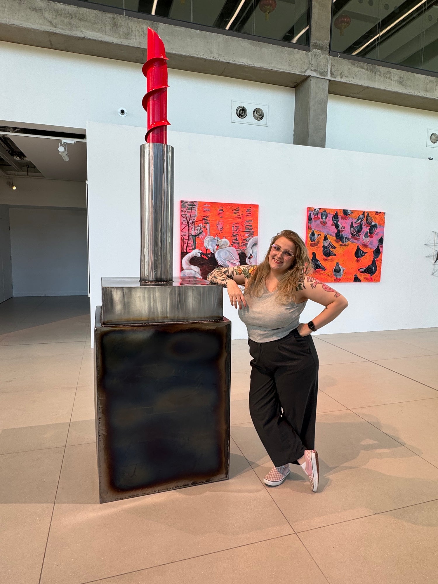 Her recent work, What’s Your Thread Length?, reimagines a lipstick bullet as a large-scale steel sculpture, exposing tensions between femininity, sexualised expectation, and power. Rooted in lived experience, it contrasts male sexual aggression with the moral scrutiny imposed on women, literalising this imbalance through collisions of masculine materials and feminine forms.